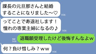 【LINE】私の旦那を奪った部下から結婚報告「結婚するから寿退社します♡憧れの専業主婦になるの」→退職願を受理した上である事実を教えてあげたら…w
