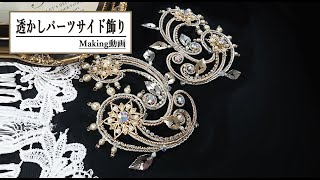 ティアラMakig動画 透かしパーツ の バレエのサイド飾り 大きめの透かしパーツ、シルバーのコード、メタルリーフ、ダイヤレーンを配した...