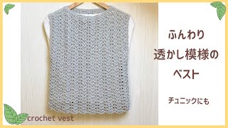 ふんわり透かし模様☆初心者さんもたぶん大丈夫☆すごく簡単なベストの編み方】 ⚪︎とじはぎする必要が無くとても簡単 ⚪︎袖 ...関連ツイ...