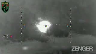 A Ukrainian R18 attack drone destroyed camouflaged Russian armor, as...
